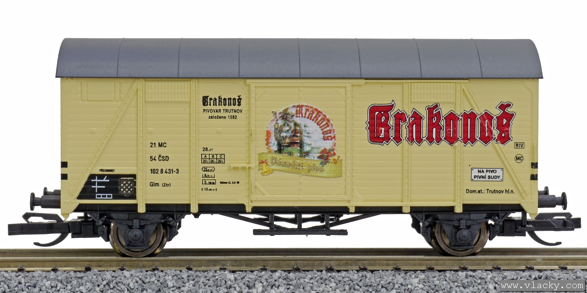 ![[Nákladní vozy] → [Kryté] → [2-osé Ztr (Glm)] → M2403: krytý nákladní vůz žlutý s rezavou střechou „Krakonoš - světlý ležák 12” [Nákladní vozy] → [Kryté] → [2-osé Ztr (Glm)] → M2403: krytý nákladní vůz žlutý s rezavou střechou „Krakonoš - světlý ležák 12”](./foto/03.02.03/00014222_t.jpg) |