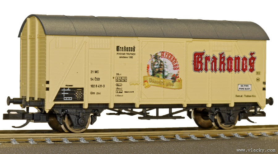 ![[Nákladní vozy] → [Kryté] → [2-osé Ztr (Glm)] → M2006: krytý nákladní vůz modrý se stříbřitou střechou „Krakonoš - Silné pivo 14“ [Nákladní vozy] → [Kryté] → [2-osé Ztr (Glm)] → M2006: krytý nákladní vůz modrý se stříbřitou střechou „Krakonoš - Silné pivo 14“](./foto/03.02.03/00011491_t.jpg) |