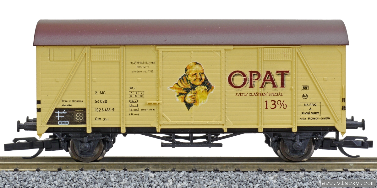| krytý nákladní vůz krémový s hnědou střechou „OPAT” |