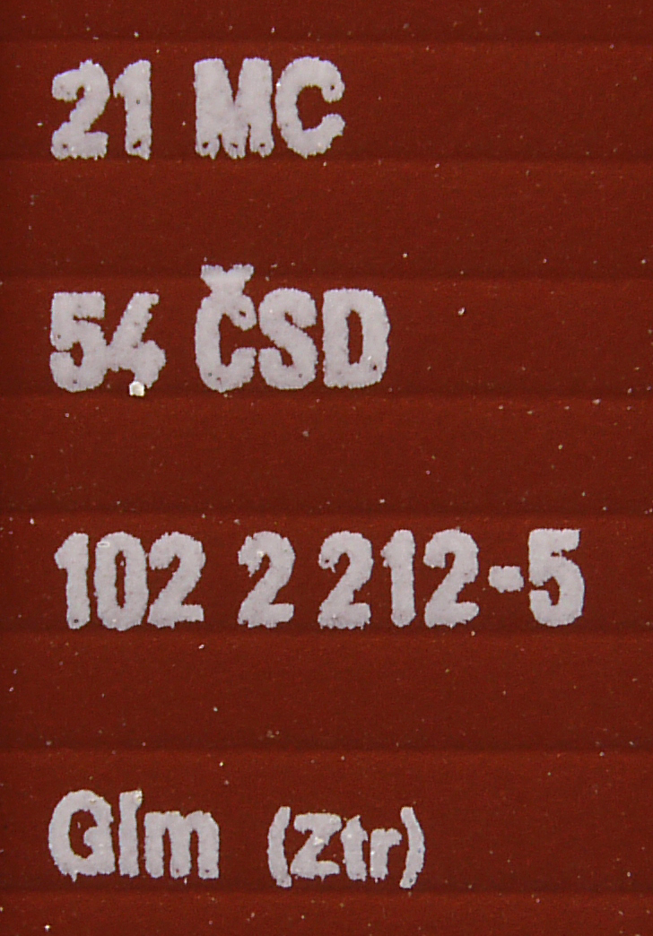 ![[Nákladní vozy] → [Kryté] → [2-osé Ztr (Glm)] → 3029.2: krytý nákladní vůz červenohnědý s hnědou střechou spěšninový „Praha hl.n. - Žilina” [Nákladní vozy] → [Kryté] → [2-osé Ztr (Glm)] → 3029.2: krytý nákladní vůz červenohnědý s hnědou střechou spěšninový „Praha hl.n. - Žilina”](./foto/03.02.03/00002089_t.jpg) |