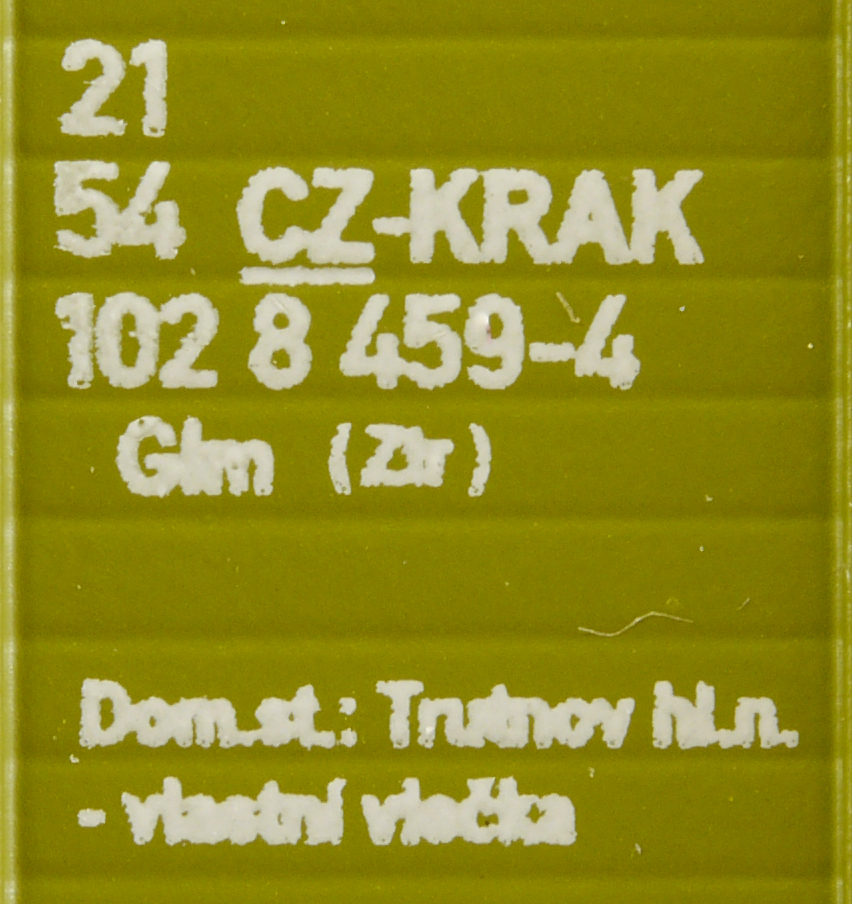 ![[Nákladní vozy] → [Kryté] → [2-osé Ztr (Glm)] → 3029.2: krytý nákladní vůz červenohnědý s hnědou střechou spěšninový „Praha hl.n. - Žilina” [Nákladní vozy] → [Kryté] → [2-osé Ztr (Glm)] → 3029.2: krytý nákladní vůz červenohnědý s hnědou střechou spěšninový „Praha hl.n. - Žilina”](./foto/03.02.03/00002089_t.jpg) |