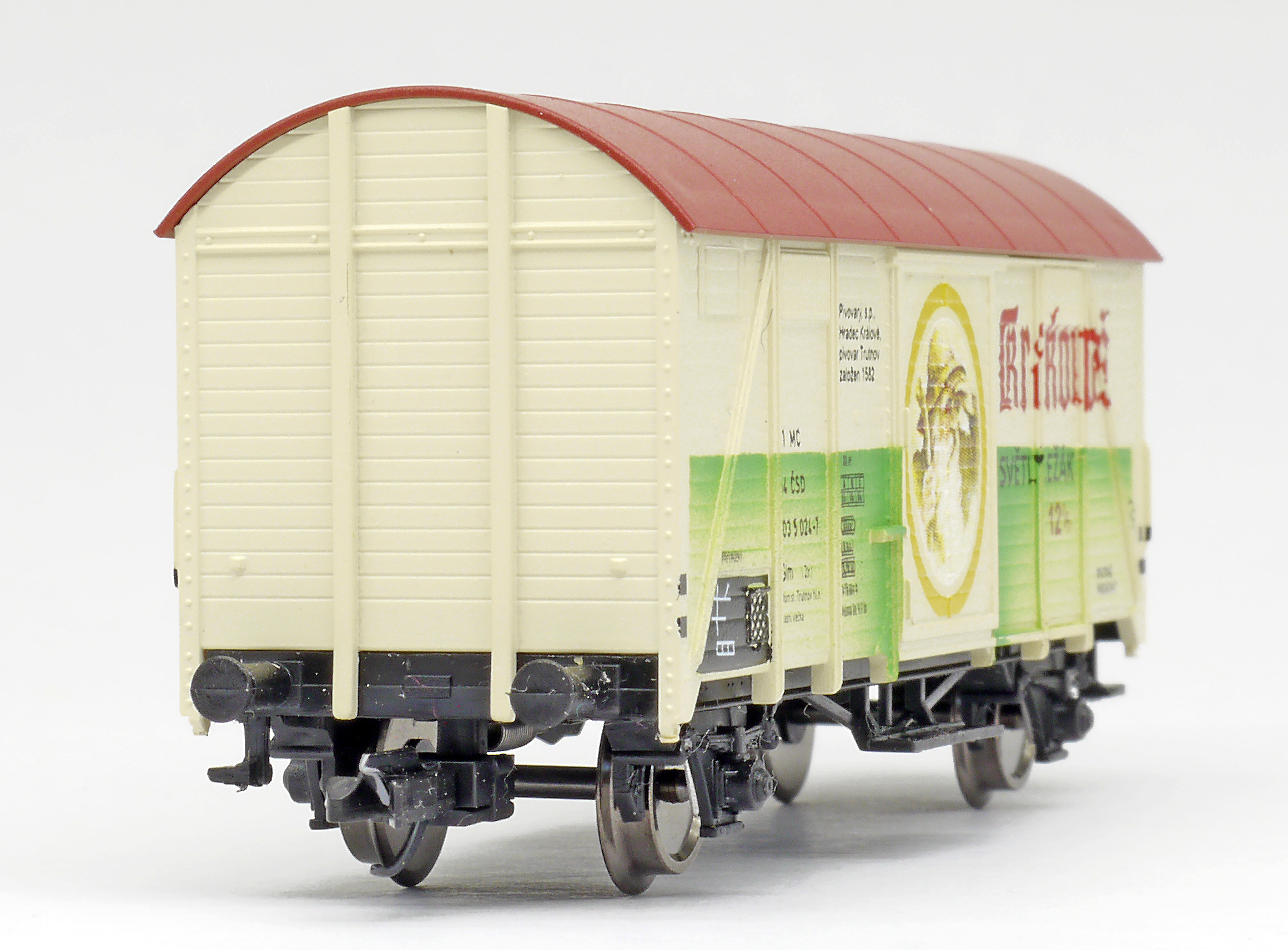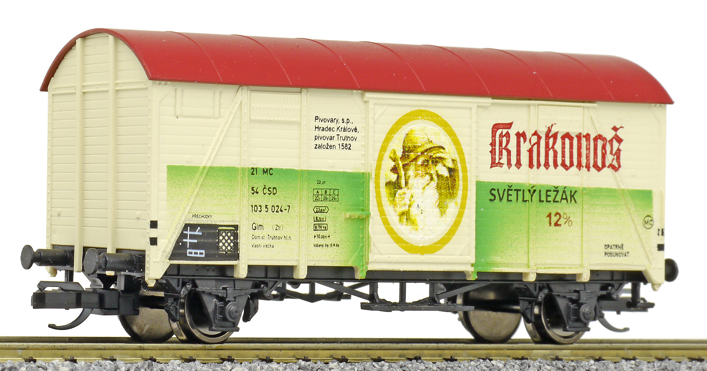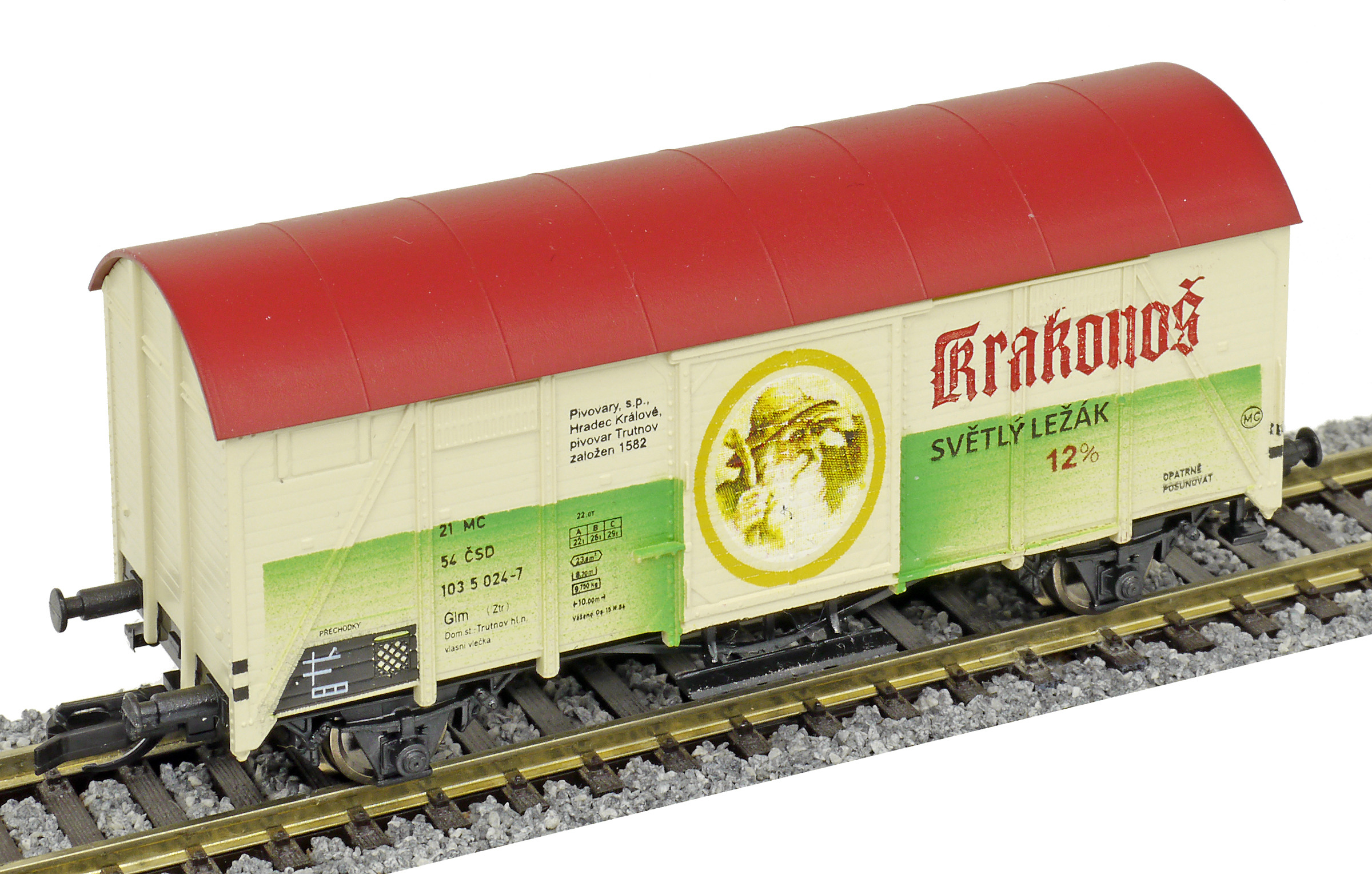 | krytý nákladní vůz žlutý s rezavou střechou „Krakonoš - světlý ležák 12” |