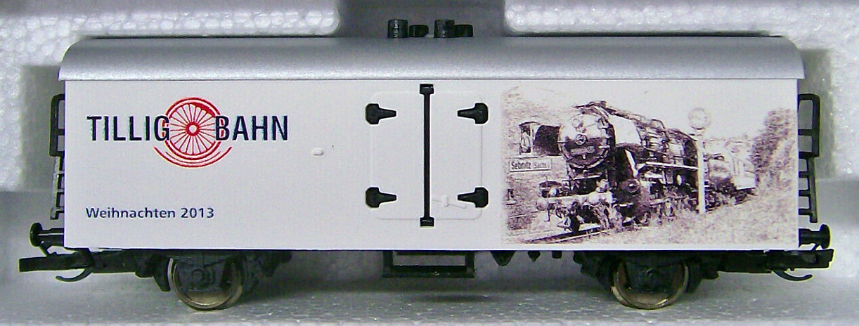 Kód   500940  [Nákladní vozy] → [Kryté] → [2-osé chladicí, pivní a reklamní] → 500940: bílý se stříbrnou střechou, vánoční Tillig 2009