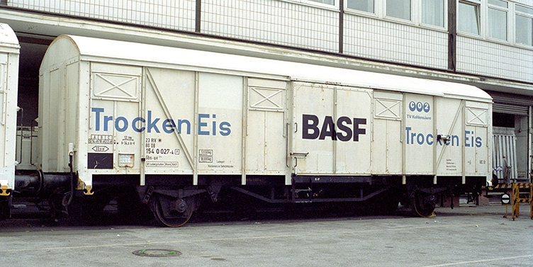 | krytý nákladní vůz bílý „BASF Trocken Eis“ |