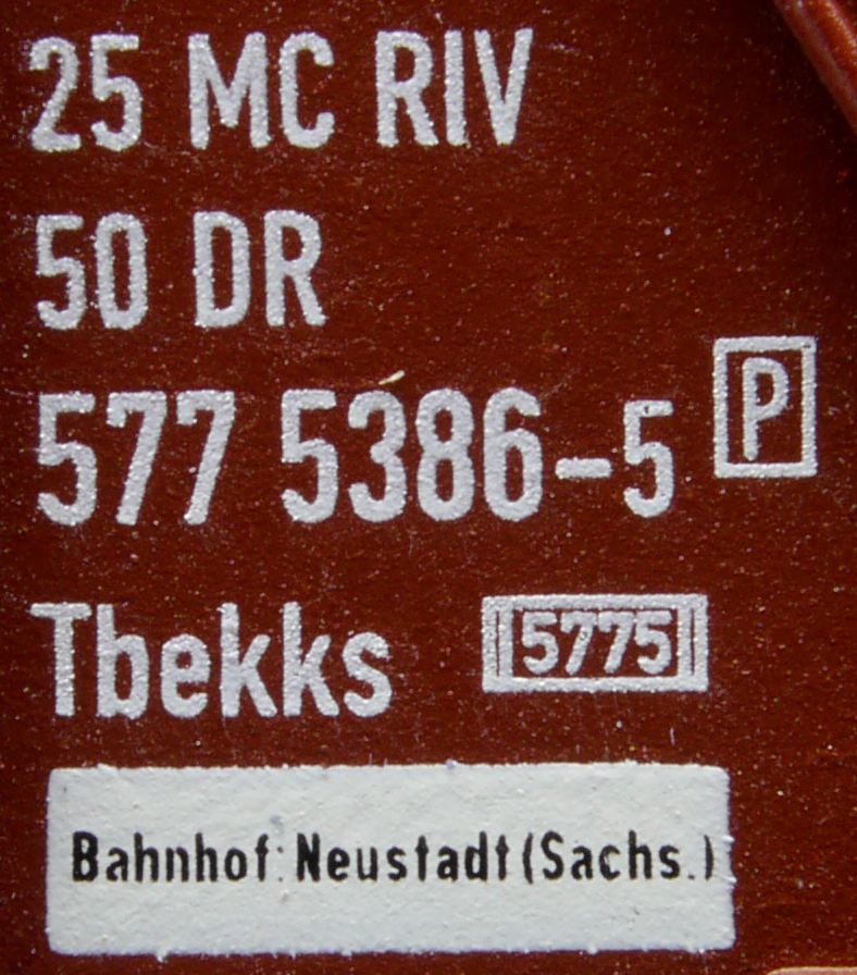 | • 25 50 577 5386-5 | → | DR - Deutsche Reichsbahn |