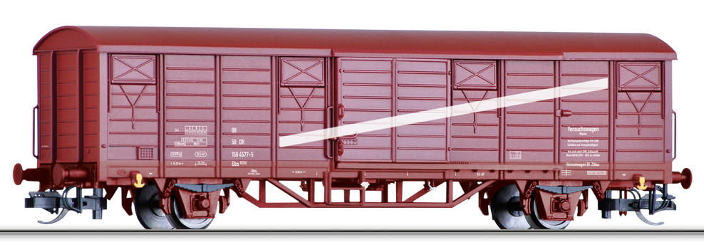 Kód   501363  [Nákladní vozy] → [Kryté] → [2-osé Gbs] → 501363: krytý nákladní vůz červenohnědý s odklopnou střechou „VEB Dachziegelwerke“