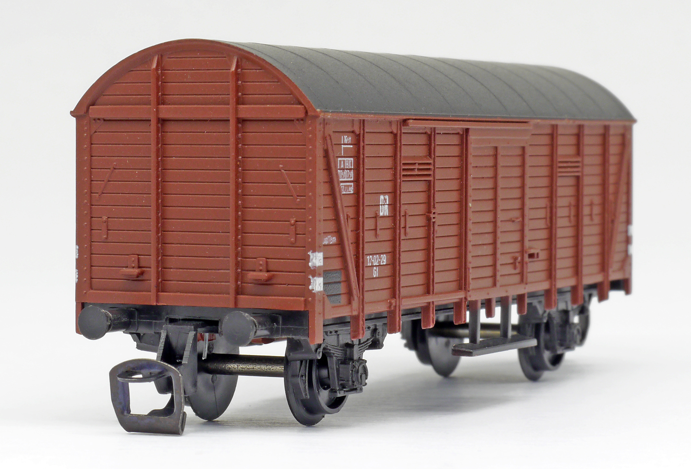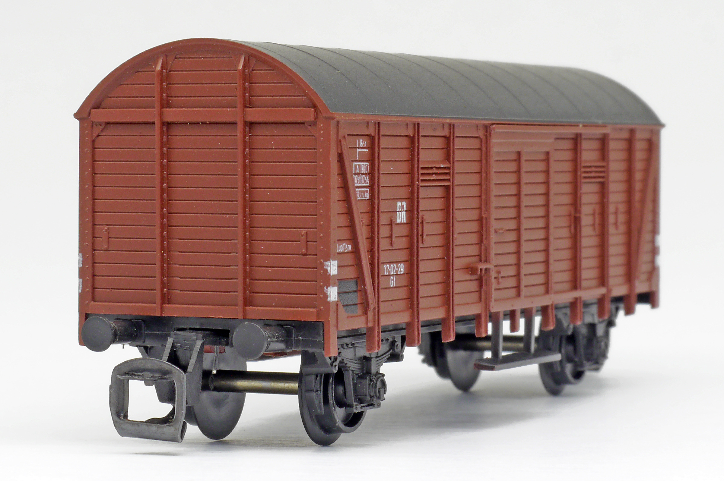 krytý nákladní vůz červenohnědý s černou střechou