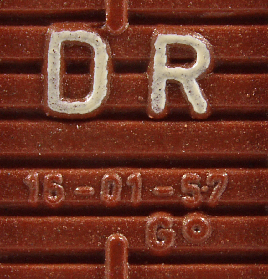 | krytý nákladní vůz červenohnědý s šedou střechou a s brzdařskou budkou |
