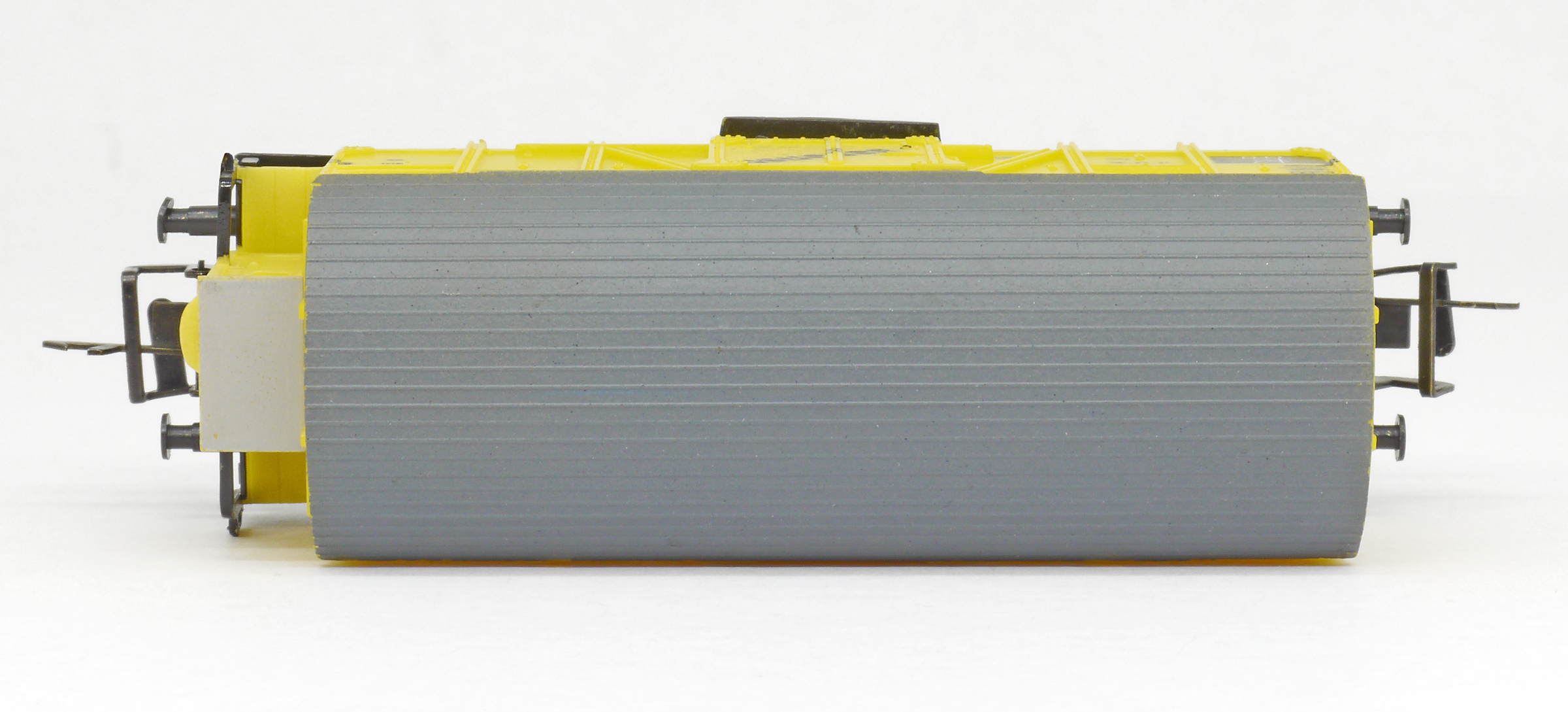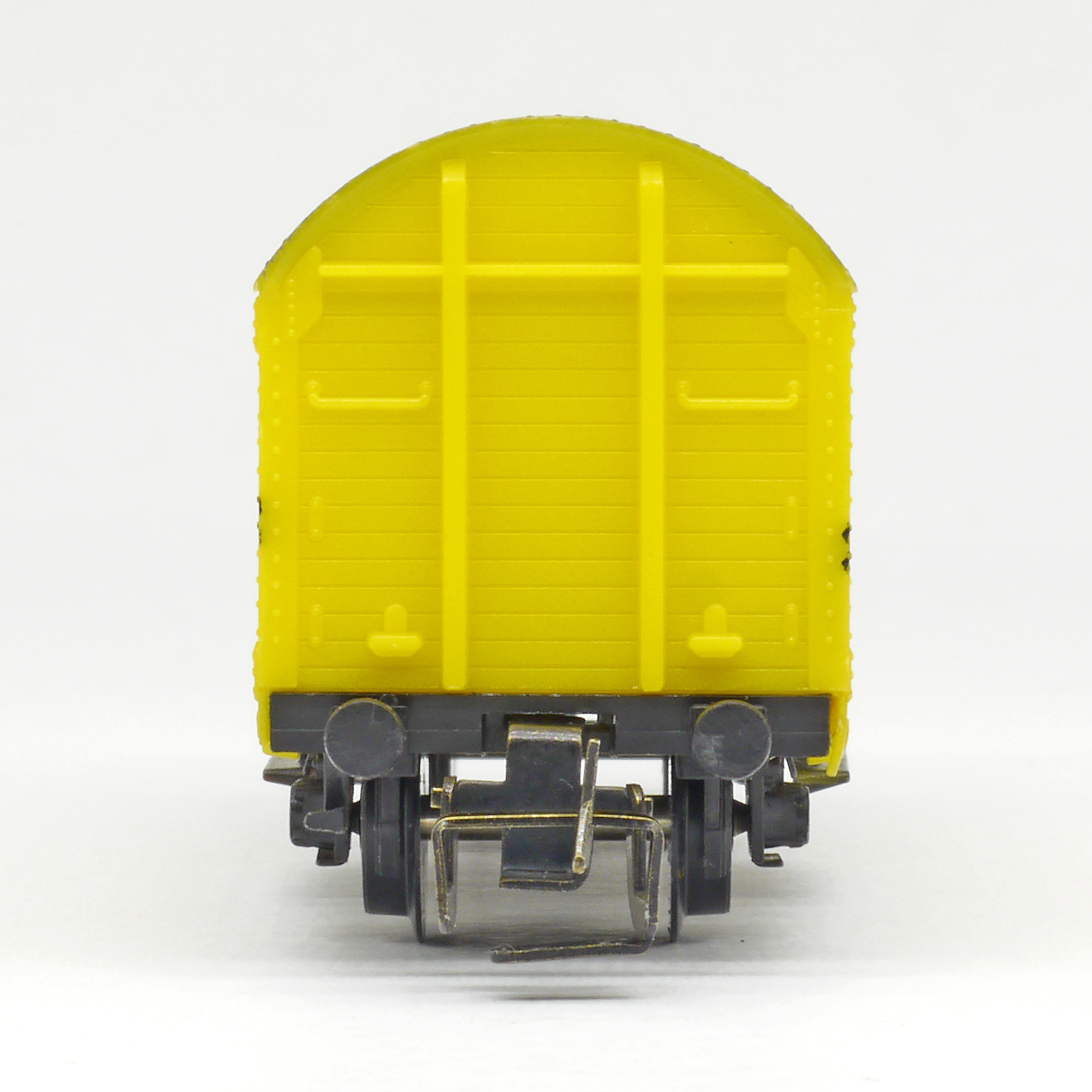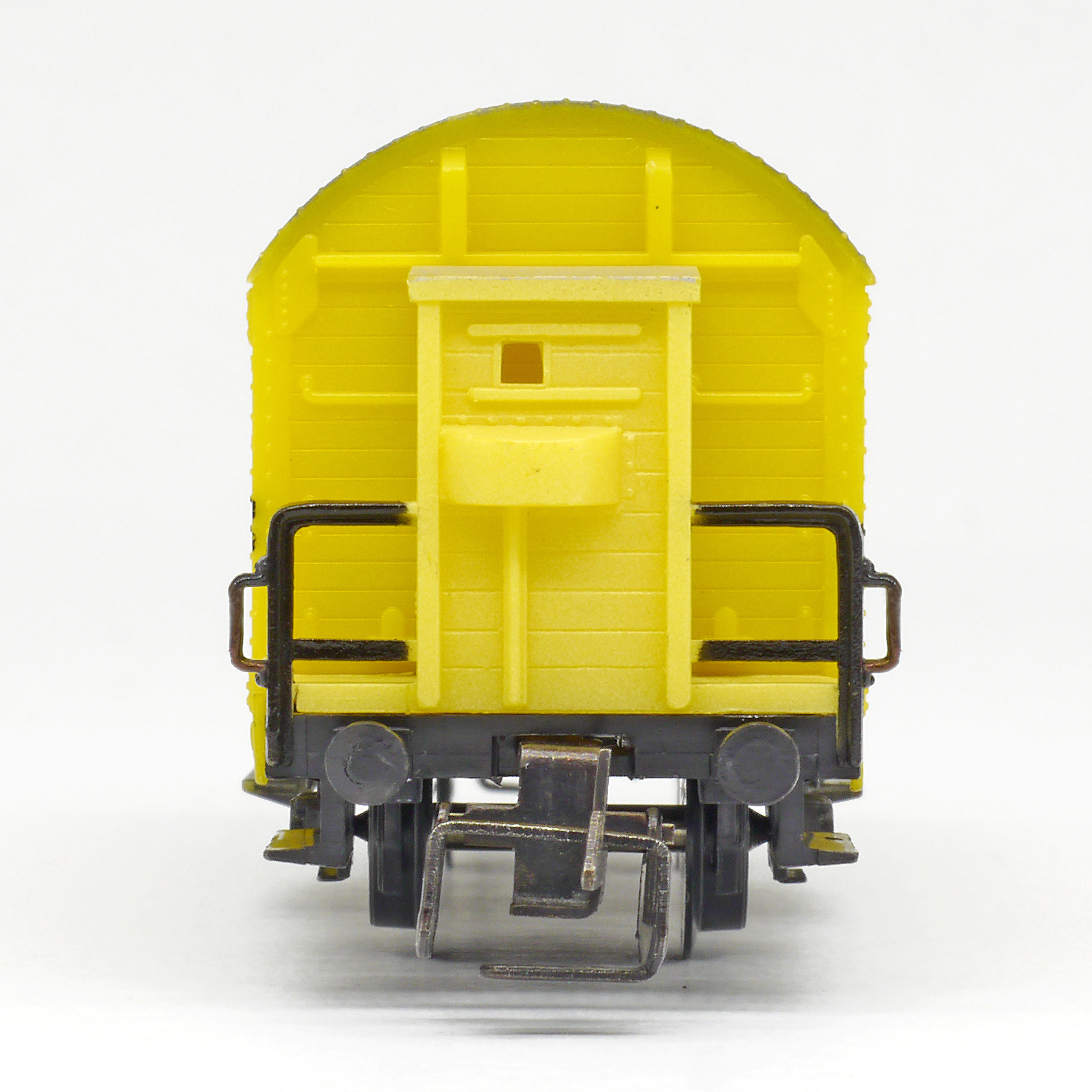 | nákladní vůz žlutý s šedou střechou a s brzdařskou budkou na přepravu banánů „Bananen“ |
