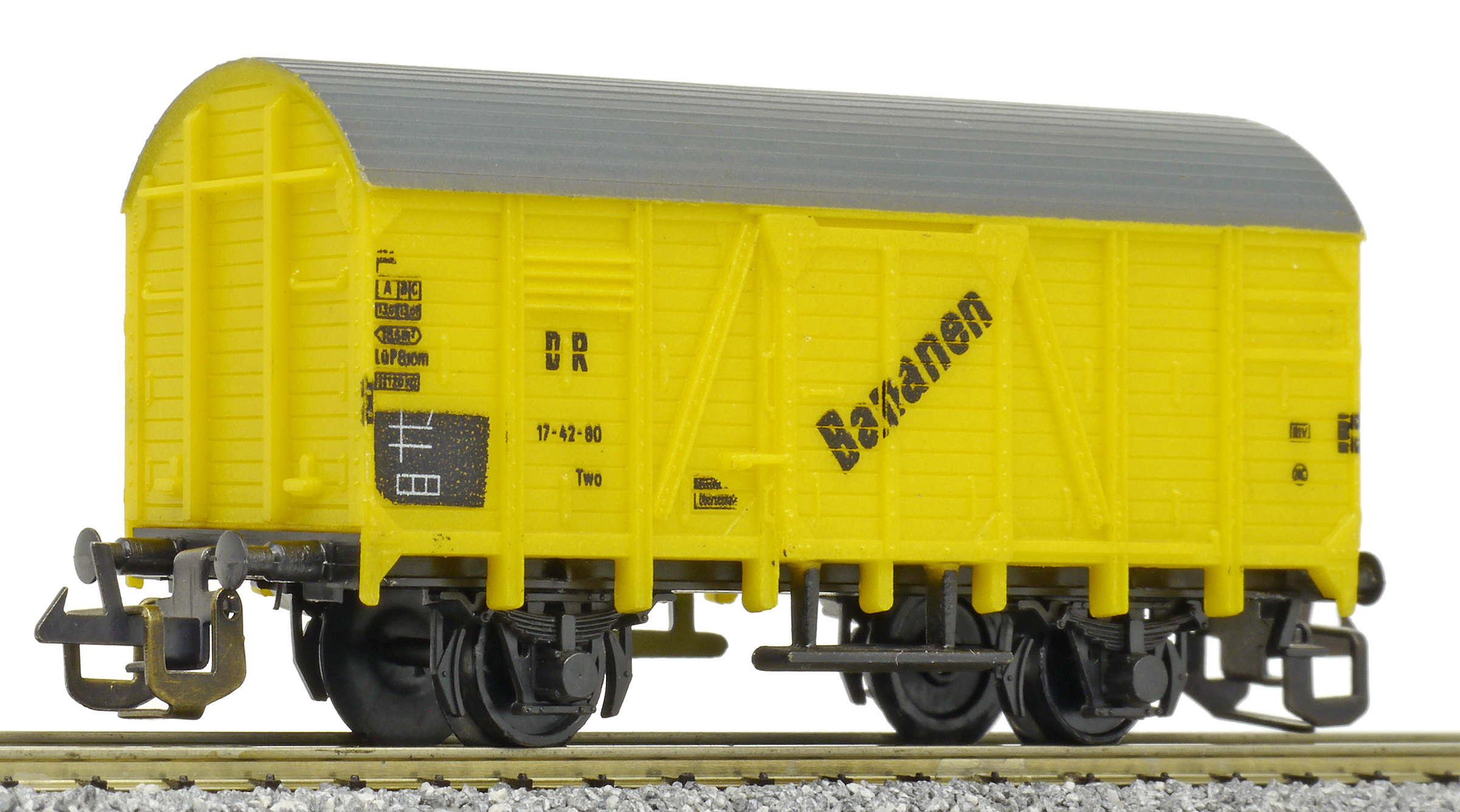 | nákladní chladící vůz žlutý s černou střechou „Bananen“ |