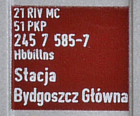 | • 21 51 245 7 585-7 | → | nákladní, nezávislé nápravy, pevný rozchod, ve vlastnictví železniční správy, RIV, PPV |