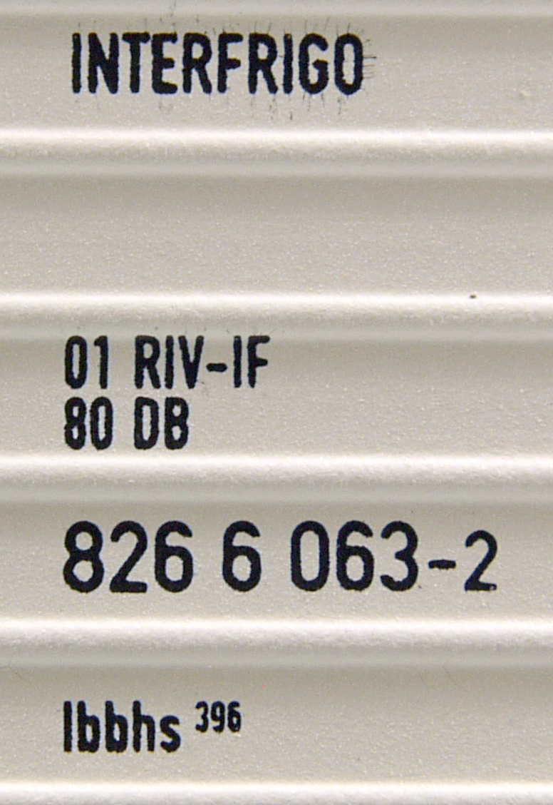 | • Ibbhs 396 | - | vůz s regulovanou teplotou, chladící vůz s tepelnou izolací třídy IN, s výměnou vzduchu pomocí větračů, s podlahovým roštem a schránami na led (3,5 m3 nebo více) |