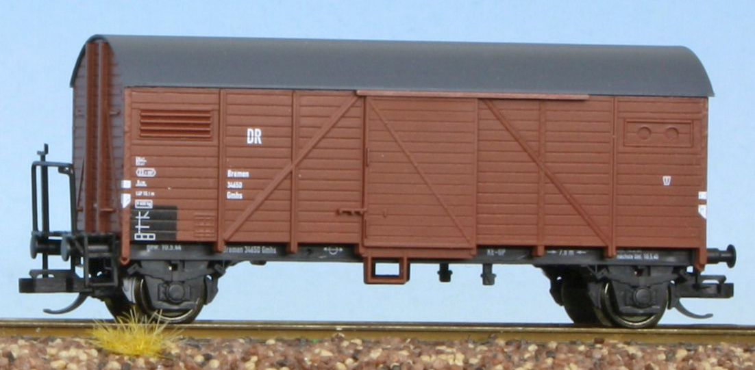 červenohnědý s šedou střechou a brzdařskou plošinou
