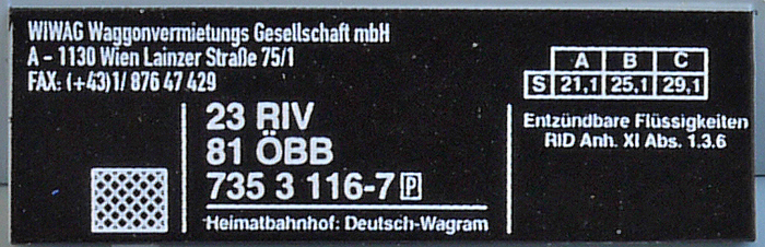 | • 23 81 735 3 116-7 | → | Z - kotlový (cisternový) vůz |