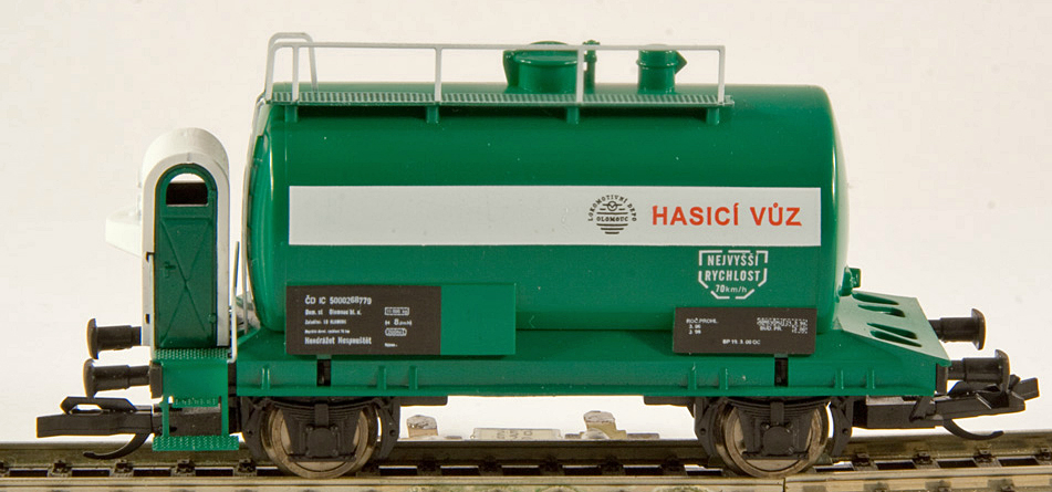 zelená s brzdařskou budkou "Hasicí vůz"