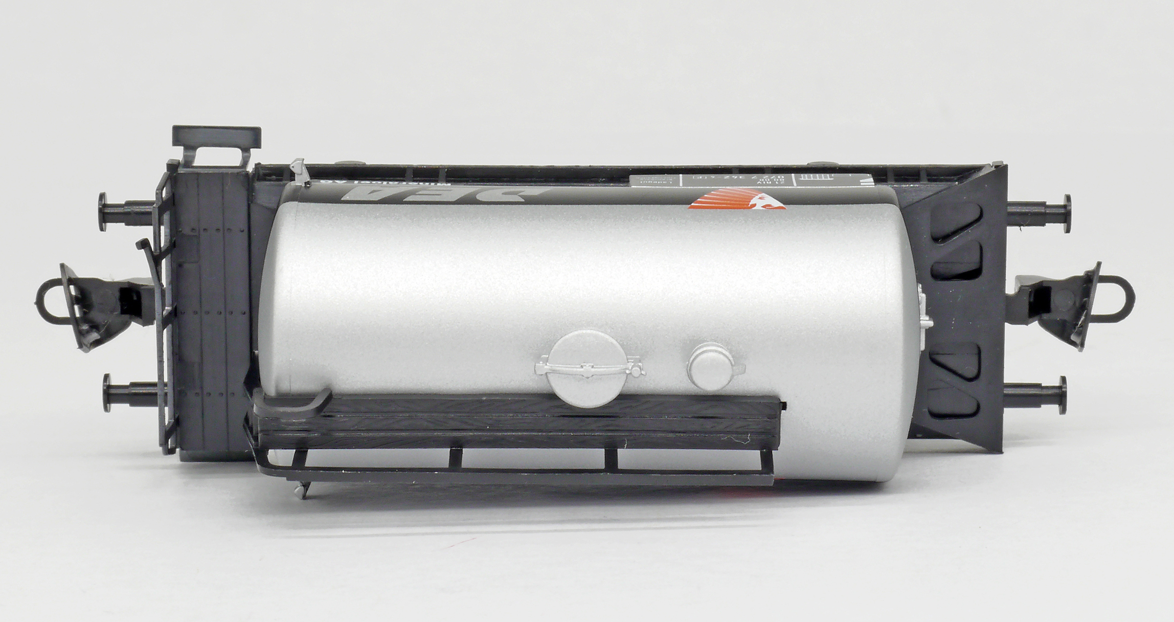 | kotlový vůz stříbrný s černým pásem a s logem „DEA“ |