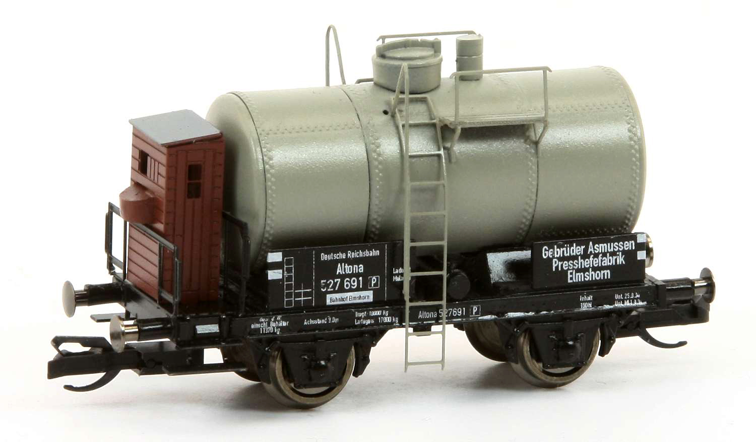 | kotlový vůz šedý s brzdařskou budou na převoz melasy |