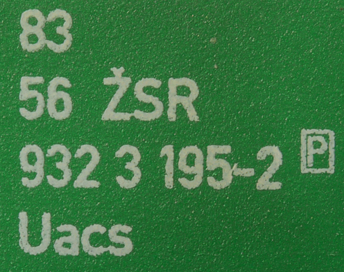 | • 83 56 932 3 195-2 | → | nákladní, s podvozky, soukromý vůz, pro mezinárodní dopravu dle zvláštních úmluv |