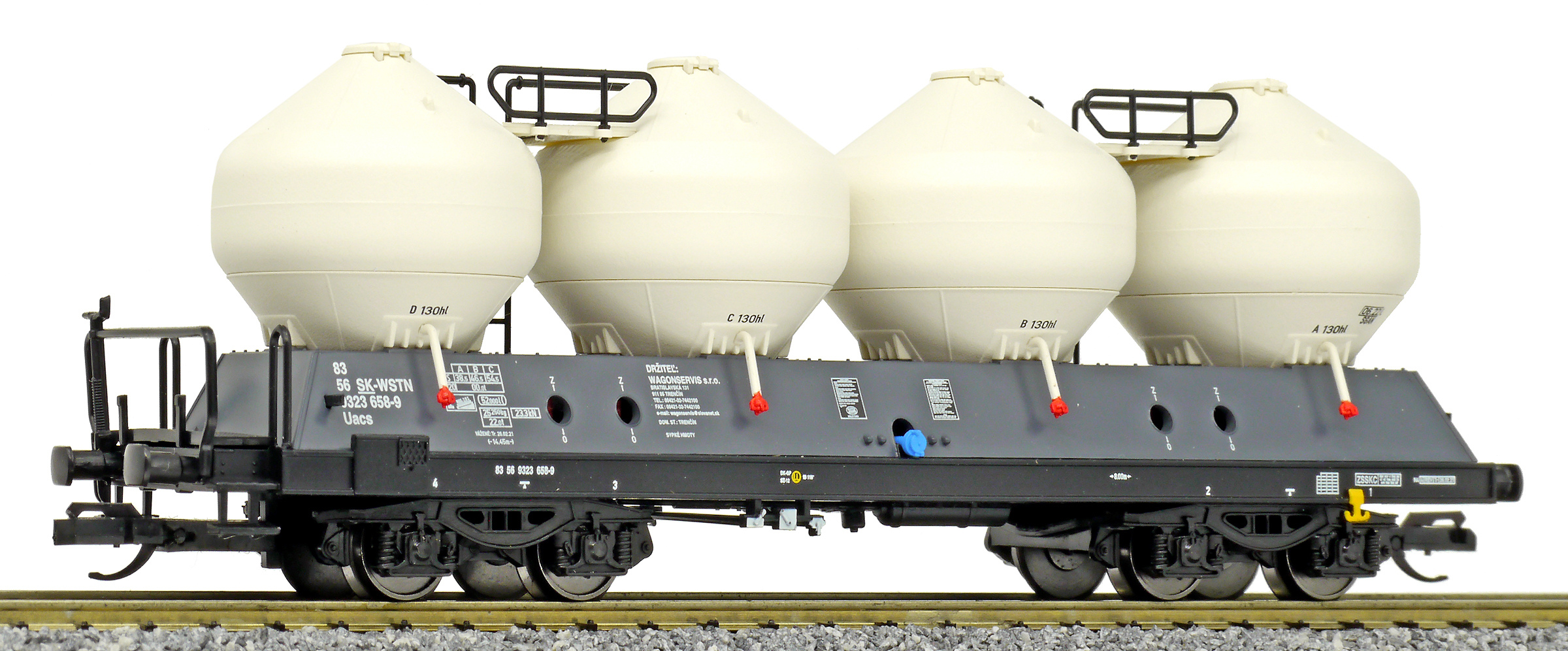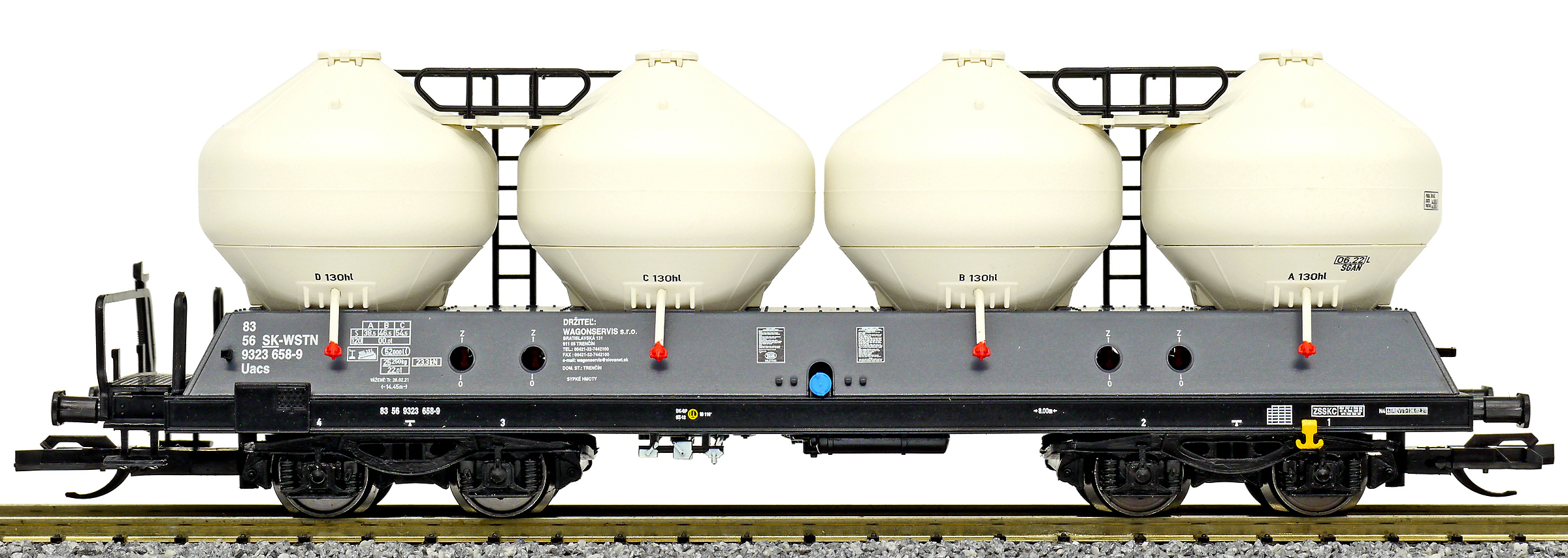 | • 83 56 9323 658-9 | → | nákladní, s podvozky, soukromý vůz, pro mezinárodní dopravu dle zvláštních úmluv |