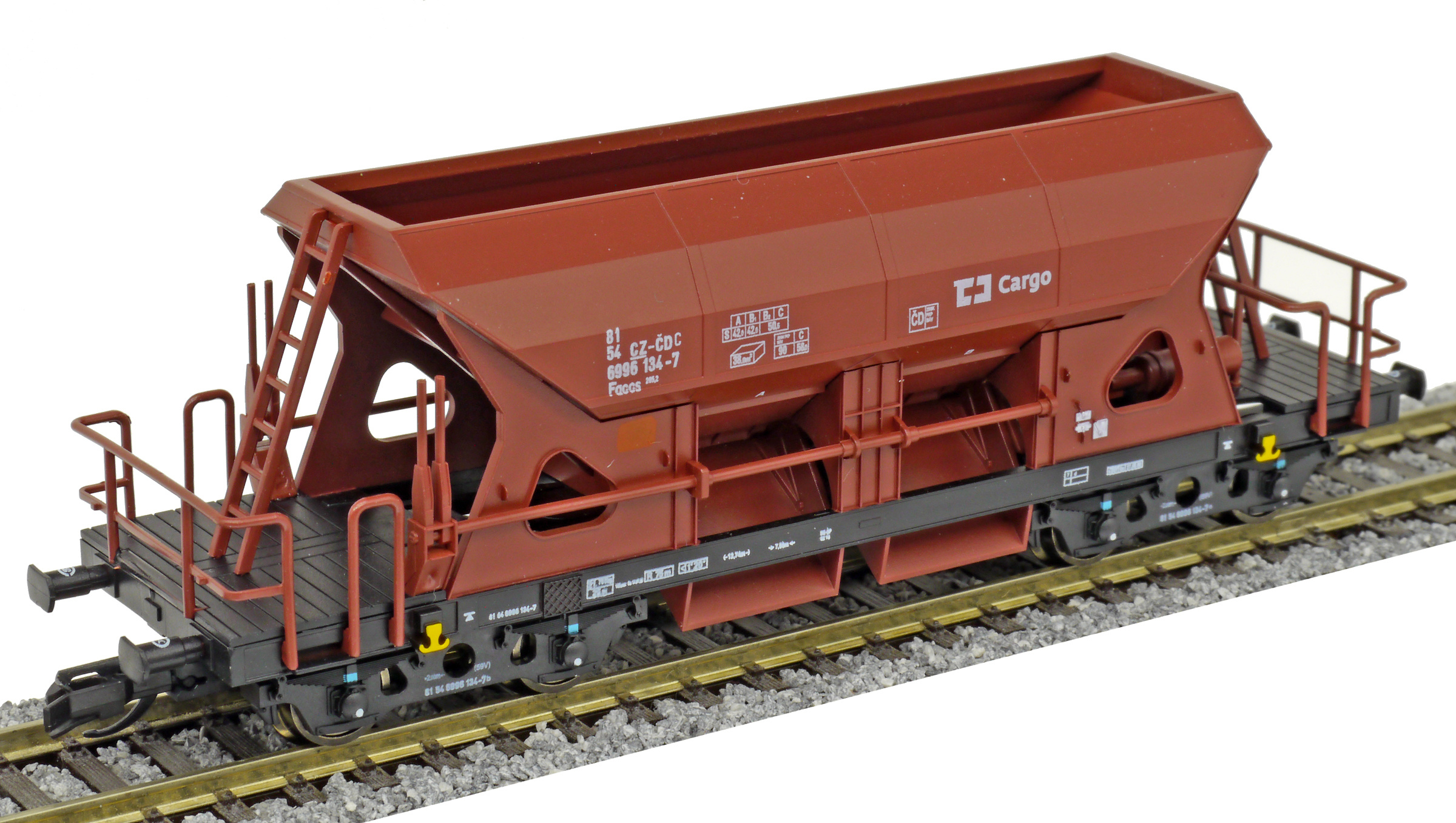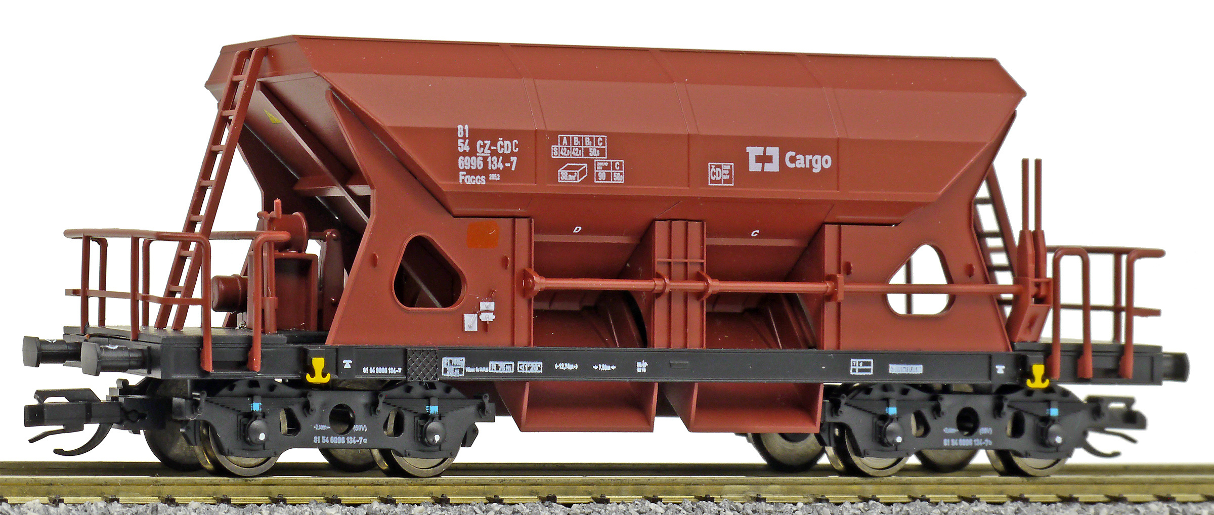Kód   3527  [Nákladní vozy] → [Samovýsypné] → [4-osé Faccs (Sas)] → 3527: nákladní samovýsypný vůz červenohnědý s černým rámem