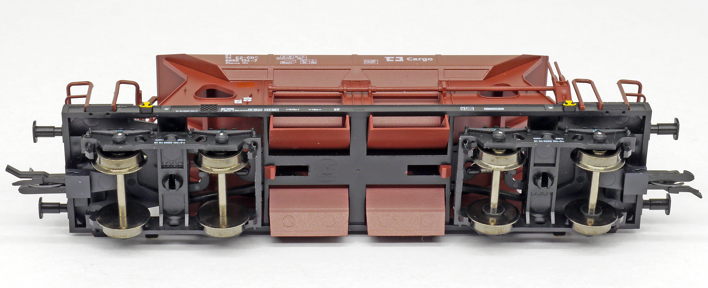 Kód   95154  [Nákladní vozy] → [Samovýsypné] → [4-osé Faccs (Sas)] → 95154: nákladní samovýsypný vůz červenohnědý s klapkami