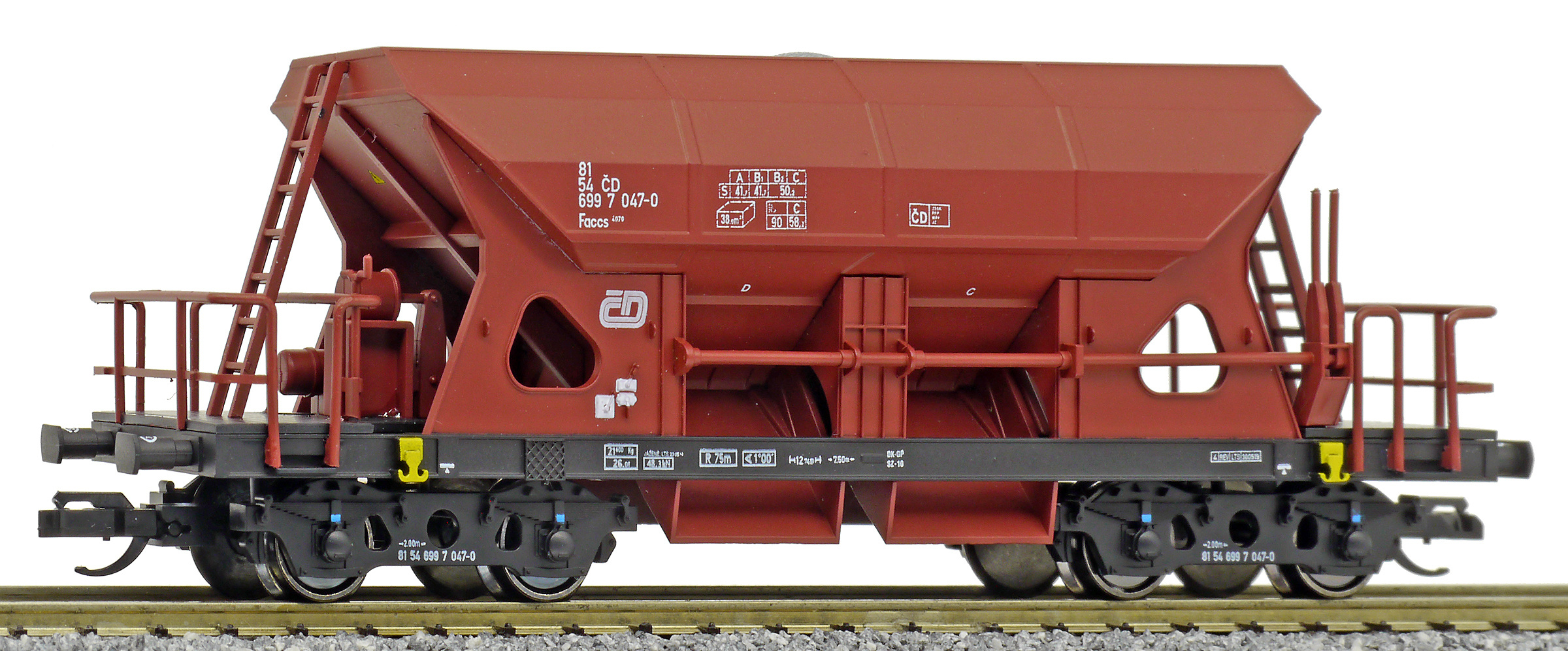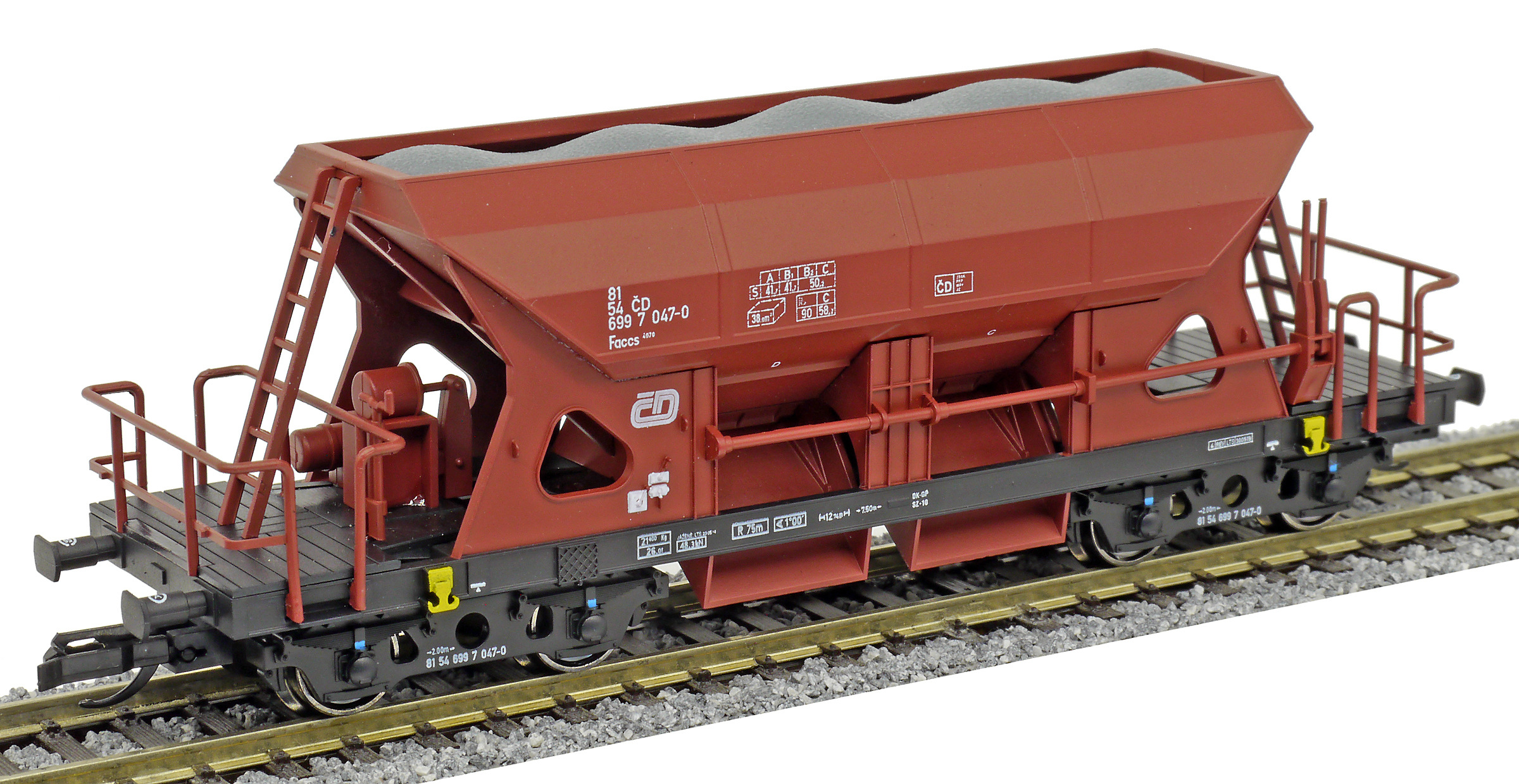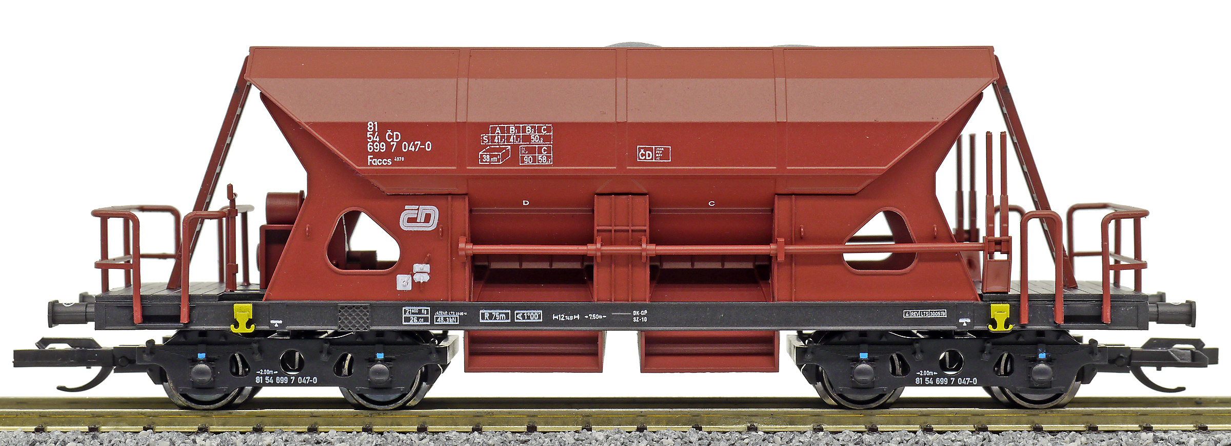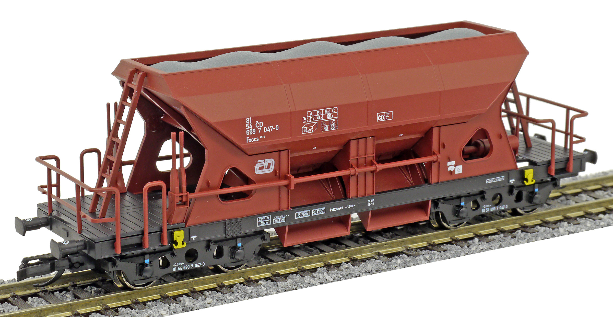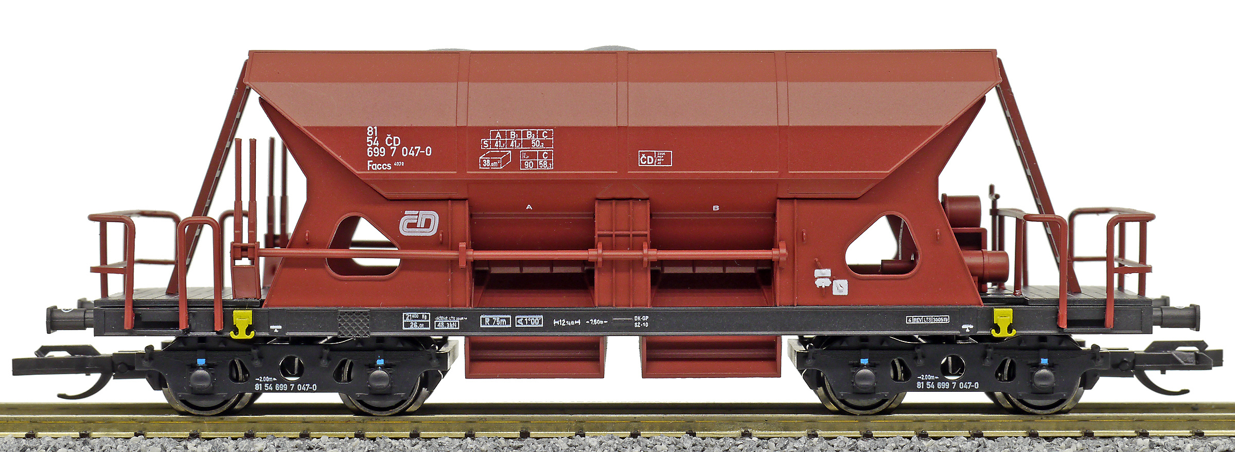 měřítko 1:120 - rozchod kolejí 12 mm kinematika krátkého spřáhla (KKK) podle normy NEM 358 107 mm - celková délka modelu přes nárazníky 4 - celkový počet náprav nebo rozložení náprav 55 g - hmotnost brutto - model včetně prodejního obalu 31 g - hmotnost netto - pouze model