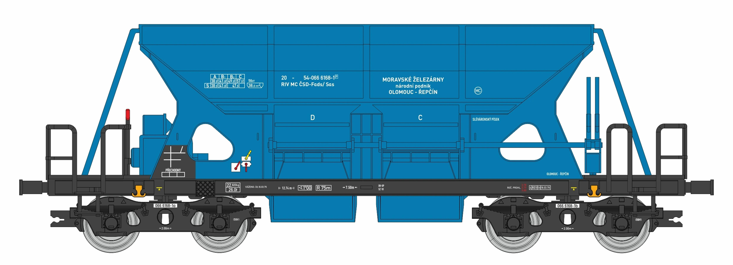 | nákladní samovýsypný vůz modrý „Moravské železárny“ |