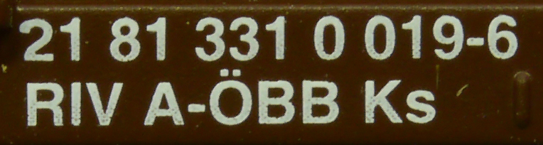| • 21 81 331 0 019-6 | → | nákladní, nezávislé nápravy, pevný rozchod, ve vlastnictví železniční správy, RIV, PPV |