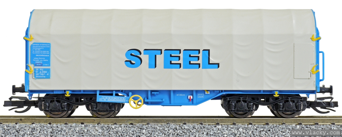 | plošinových vůz modrý s plachtou „STEEL“ |